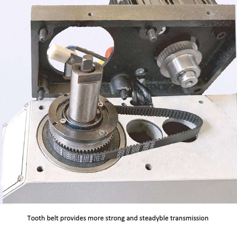 DM320 sử dụng hệ truyền động dây đai giúp máy vận hành êm, giảm rung và tiếng ồn so với hệ truyền động bánh răng. Tốc độ trục chính có thể thay đổi theo nhiều cấp, đáp ứng đa dạng nhu cầu gia công.