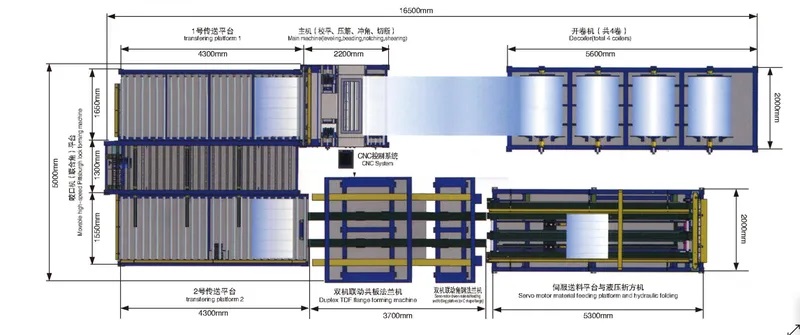 Bước đầu tiên là ép phẳng và tạo gân cho các tấm, bước thứ hai là khía các miệng vuông và nhọn, bước thứ ba là tạo hình, bước thứ tư là tạo hình các mặt bích TDF và mặt bích góc, và cuối cùng, các tấm được uốn cong thành miệng, hình chữ L hoặc chữ U theo nhu cầu của khách hàng. Bạn cũng có thể thiết lập để thực hiện một số chức năng này để đáp ứng các nhu cầu khác nhau của mình.