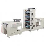 3, Hệ thống truyền dẫn không trục: Mỗi đơn vị in được truyền bởi động cơ servo độc lập, tổng cộng 15 bộ động cơ servo cho toàn bộ máy (6 màu) để đảm bảo độ chính xác đăng ký màu chính xác trong quá trình vận hành tốc độ cao.