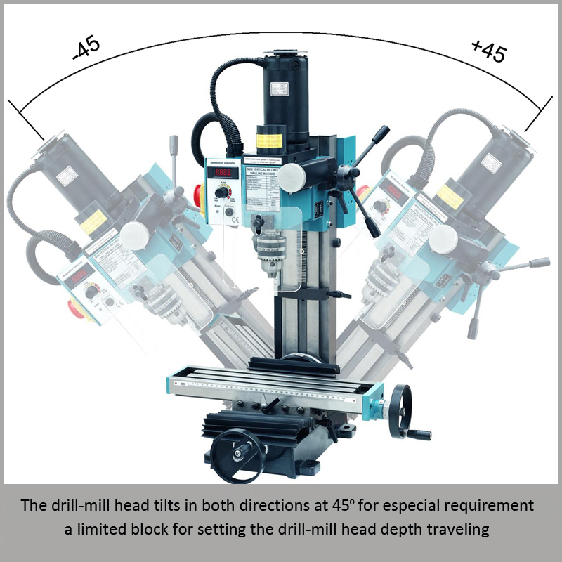 - Đầu máy có thể nghiêng ±45° sang hai bên