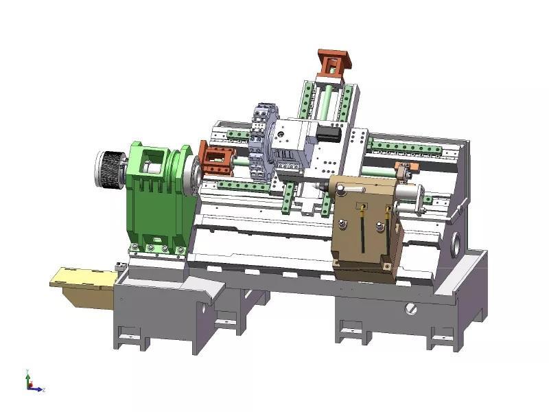 Băng máy nghiêng 45°, kết hợp ray dẫn hướng phẳng cao – thấp và bàn trượt bản rộng độ cứng cao, giúp phân tán lực cắt, tăng độ ổn định và kéo dài tuổi thọ ray dẫn.